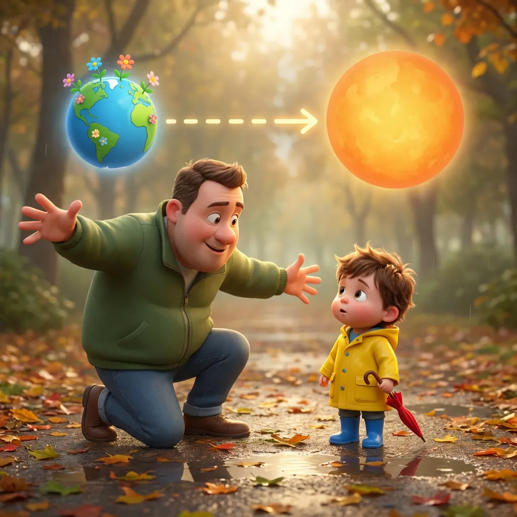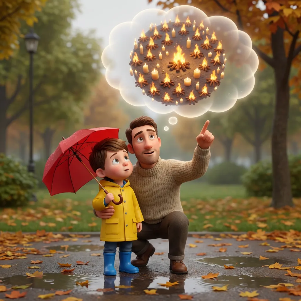 Тато усміхнувся і взяв Льову на руки. «Ні, Сонце — це величезна розпечена зірка! Це як мільйон вогнищ, що зібралися в одну велику кулю високо в небі».