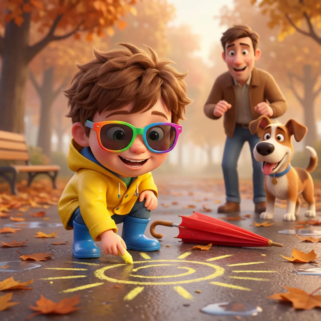 Льова заспокоївся і надів свої круті сонячні окуляри. «Дякую, Сонце, що ти таке тепле!» — вигукнув він і побіг малювати жовте коло крейдою на асфальті.