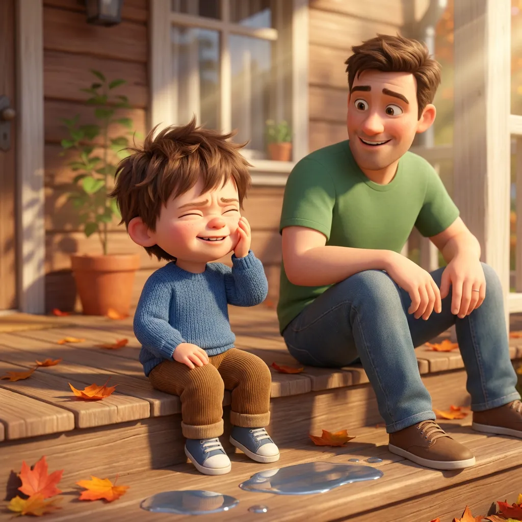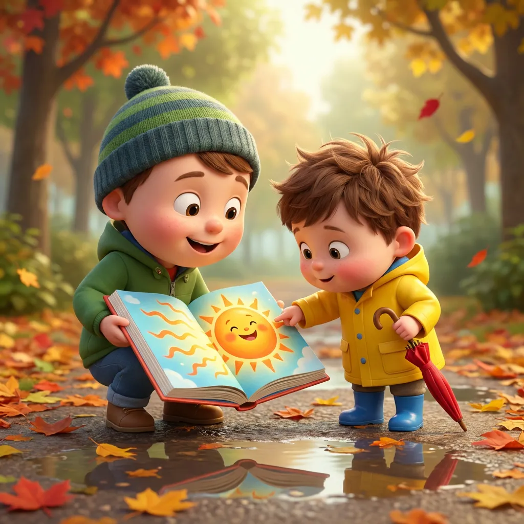 Настав сонячний ранок. Льова вибіг на подвір'я і підставив обличчя під промінці. «Ой, щічки стали теплі! — здивувався він. — Тату, хто нагрів Сонце?»