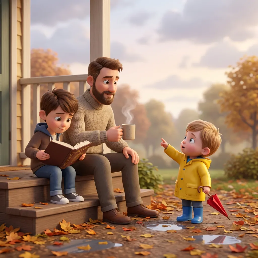 Тато сидів на ґанку з чашкою кави. Поруч старший брат Майкі гортав велику кольорову книгу. Льова запитав: «Це велетень увімкнув його в розетку, як наш обігрівач?»