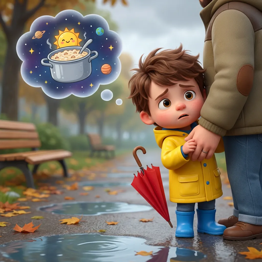 Льова уявив Сонце як велику каструлю з гарячою кашею, що булькає в небі. «А воно не впаде на нас?» — стурбовано запитав він, ховаючись за тата.