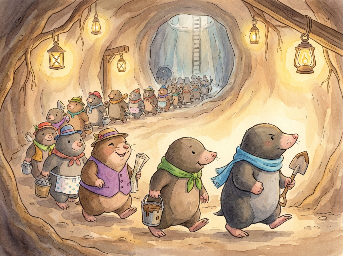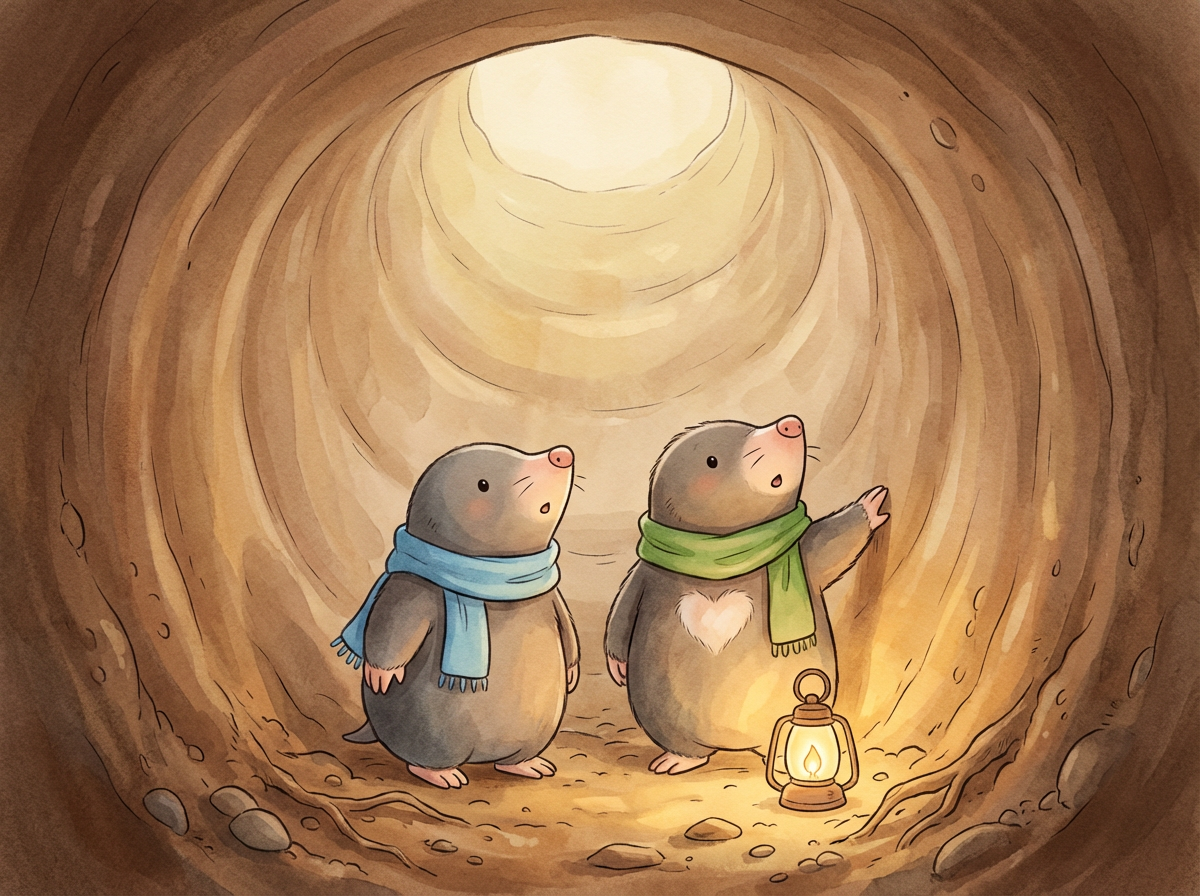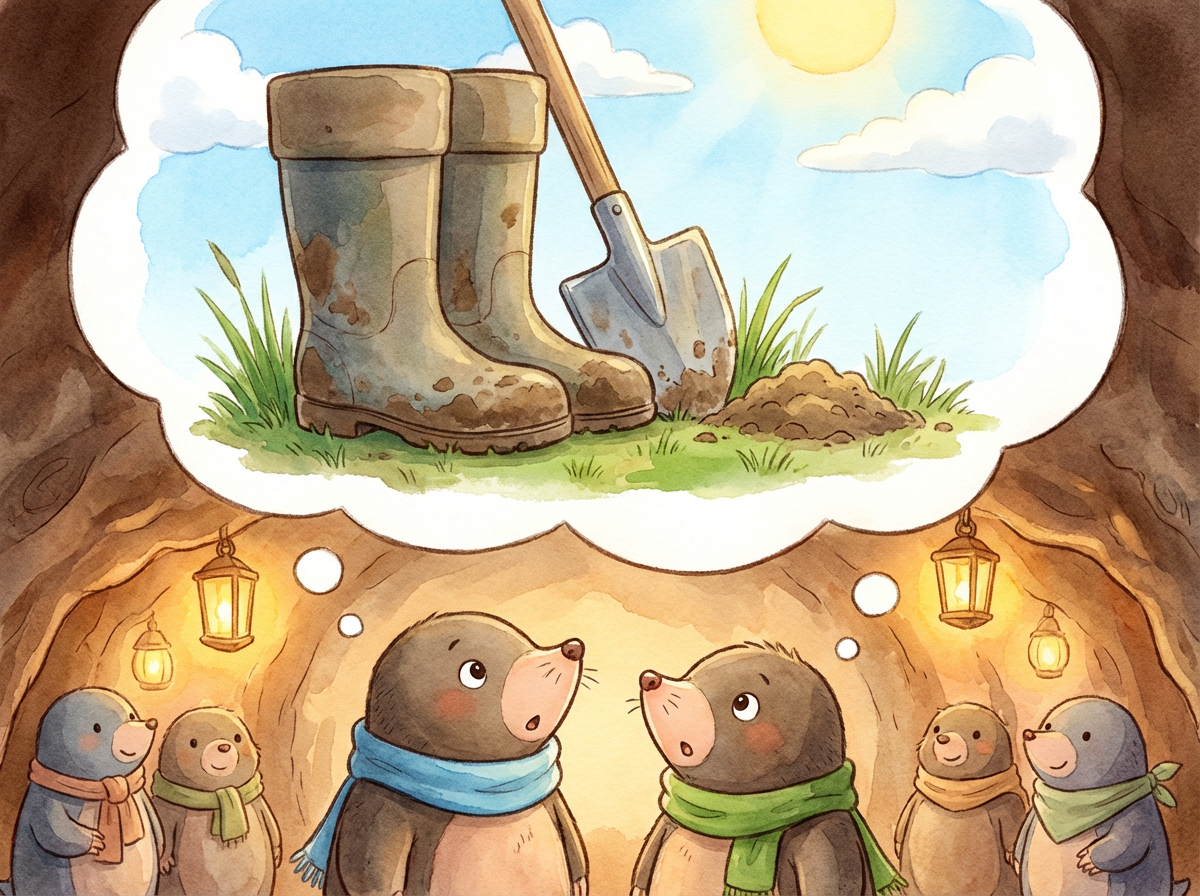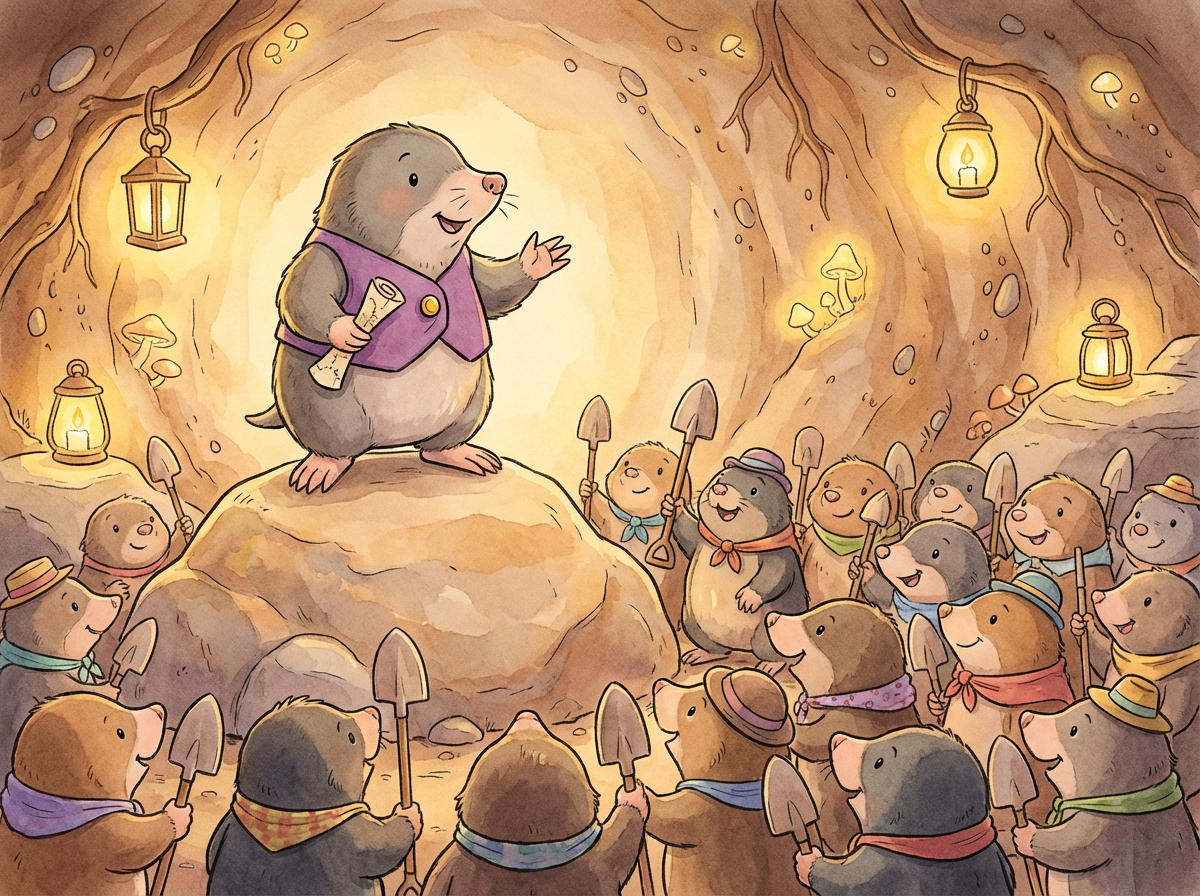 The moles were not scared anymore; they were ready to protect their home. "If Farmer Fluffy thinks water will stop us, he doesn't know moles," said Mayor Mabel bravely. "We are excellent diggers, and we are smart."