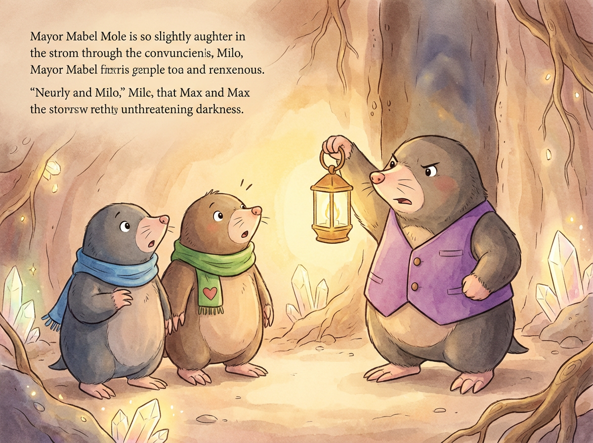 Mayor Mabel squinted at the ceiling of the tunnel. "I know this work," she said with a frown. "This wasn't an accident. It was Farmer Fluffy from the surface!"