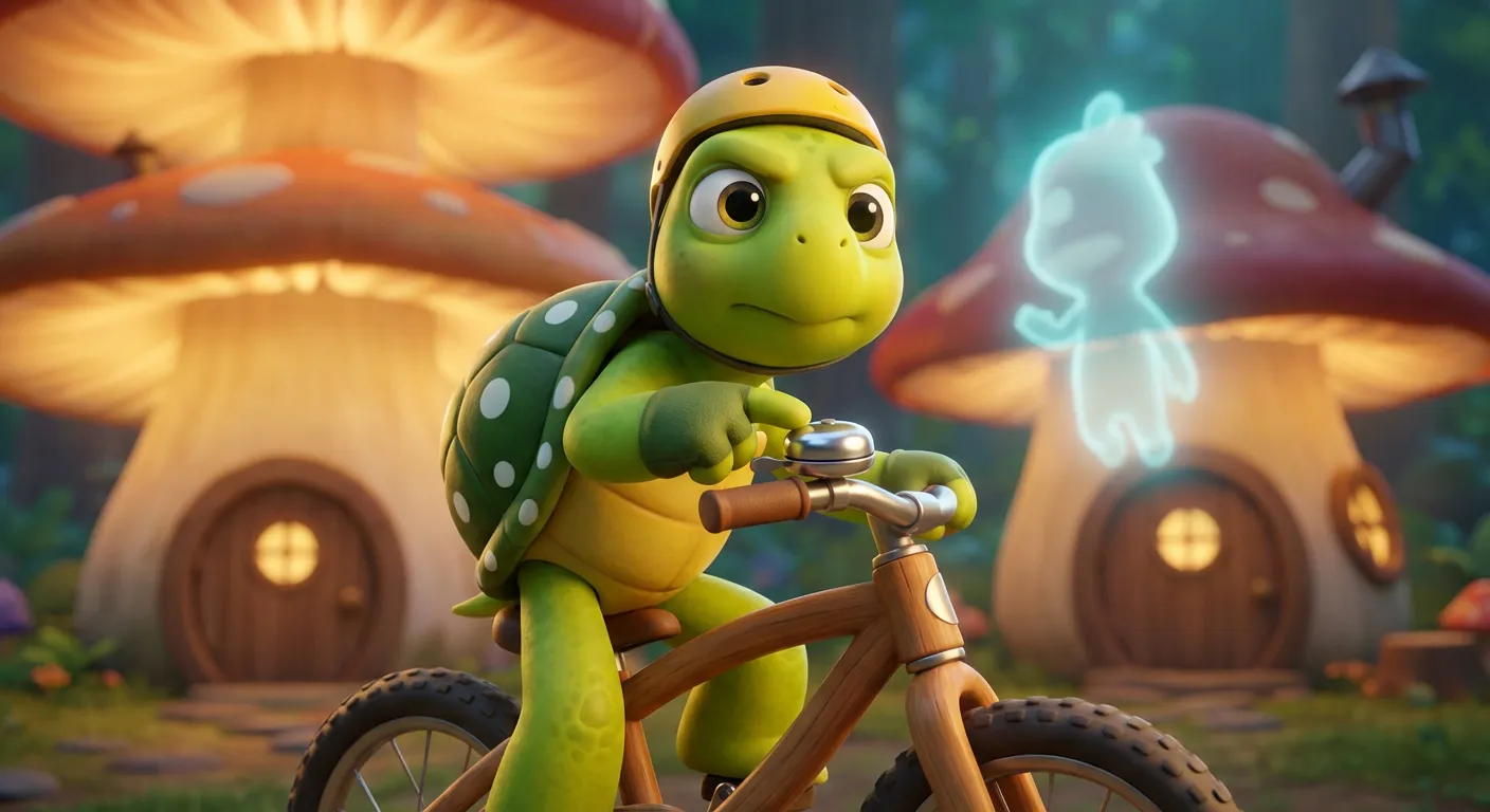 Mom gasped and Dad stopped in his tracks, but Leo felt brave in his fast hare costume. He rolled his bicycle forward and rang his shiny bell loudly. "Ding-ding! Go away, ghost!" he shouted.