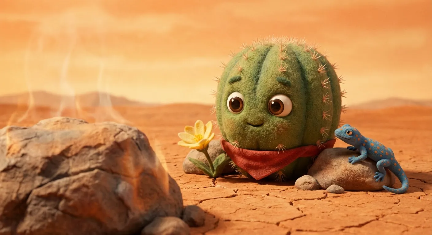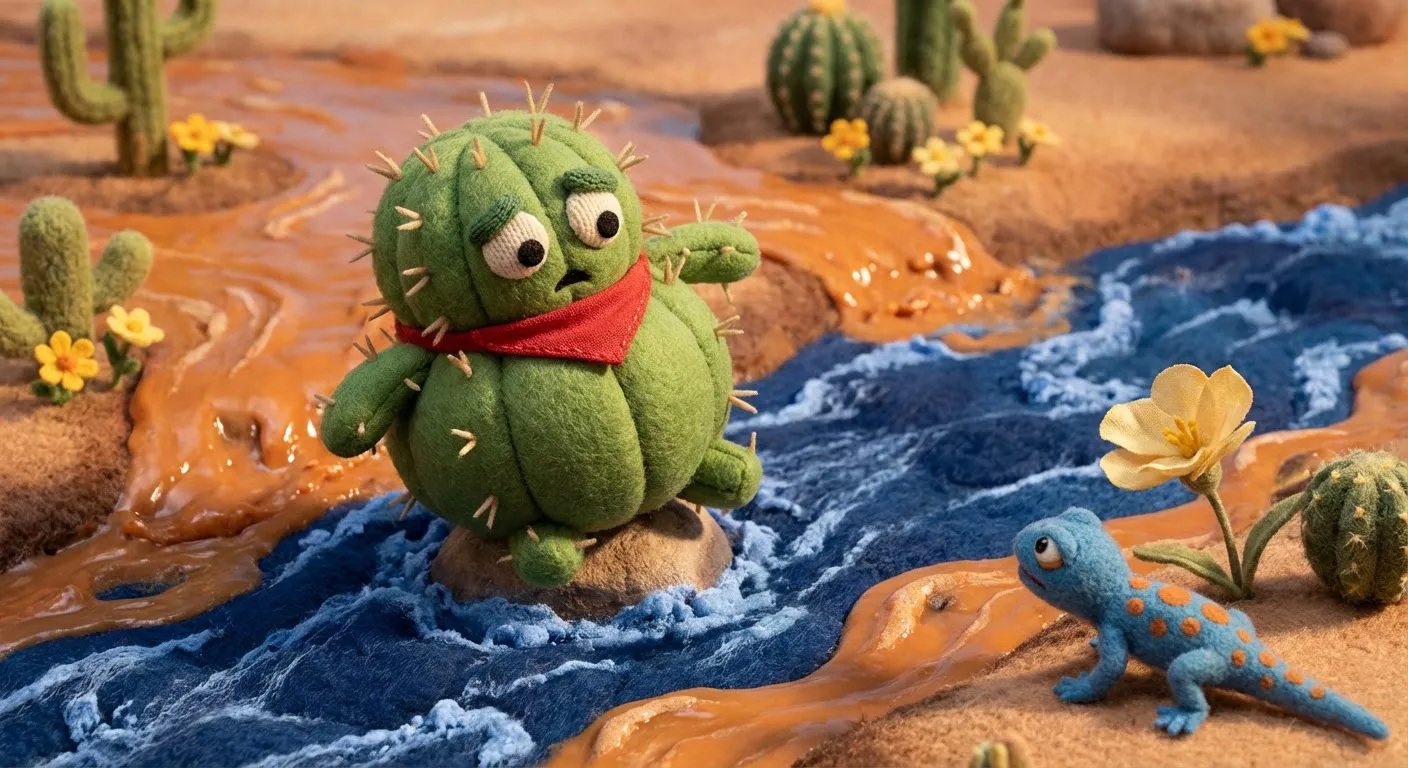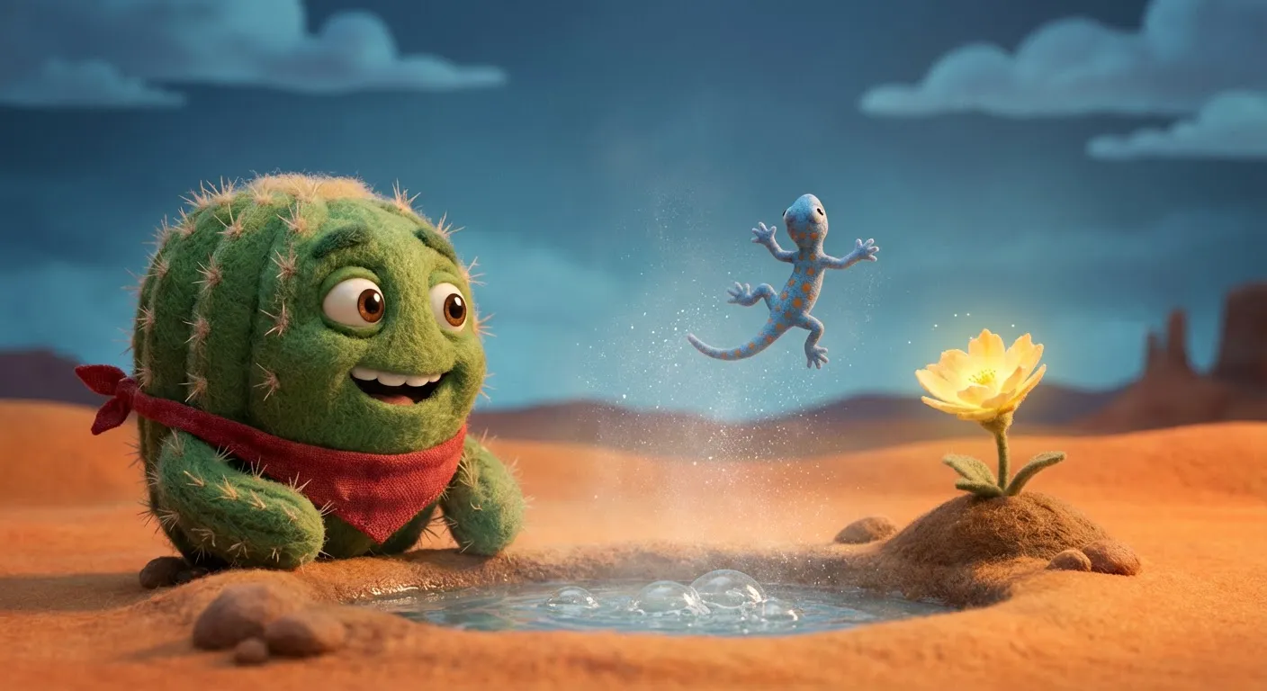 The storm passed, and the desert was peaceful again. Barnaby learned that saving water was smart, but sharing the overflow made the whole desert bloom. He adjusted his red bandana and smiled, ready for whatever the weather brought next.