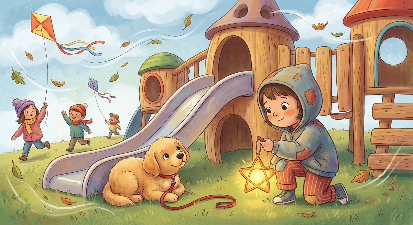 Lila found a tiny lantern in Grandpa's attic, glowing like a sleepy firefly. When she whispered, "I wish I could help someone today," the lantern blinked twice and warmed her hands. Outside, the wind whooshed and carried a soft, worried sound from the park.