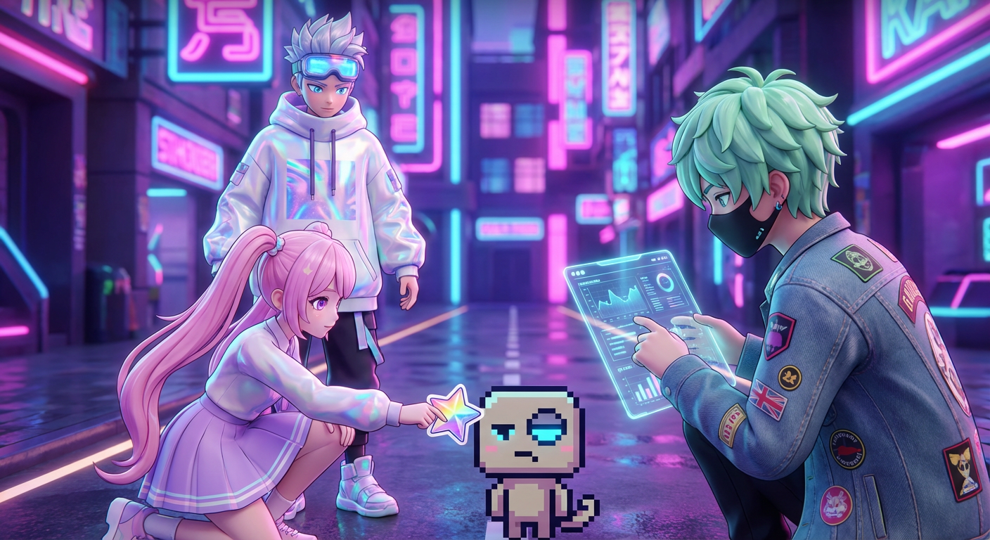 "It's a Pixel-Pinch!" Jax explained, typing fast on his screen. "It eats colors when it has a tummy ache." Luna tried to offer it a sparkly sticker, but the creature just burped a gray cloud.